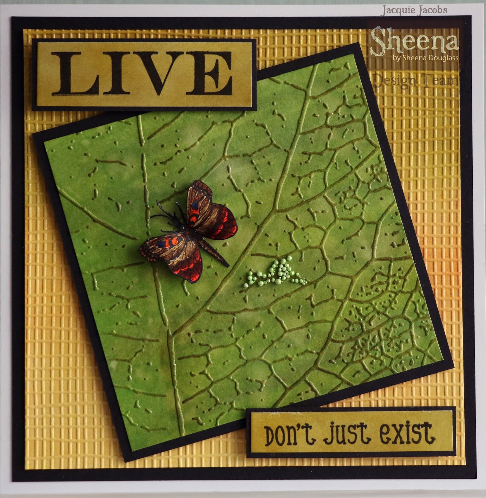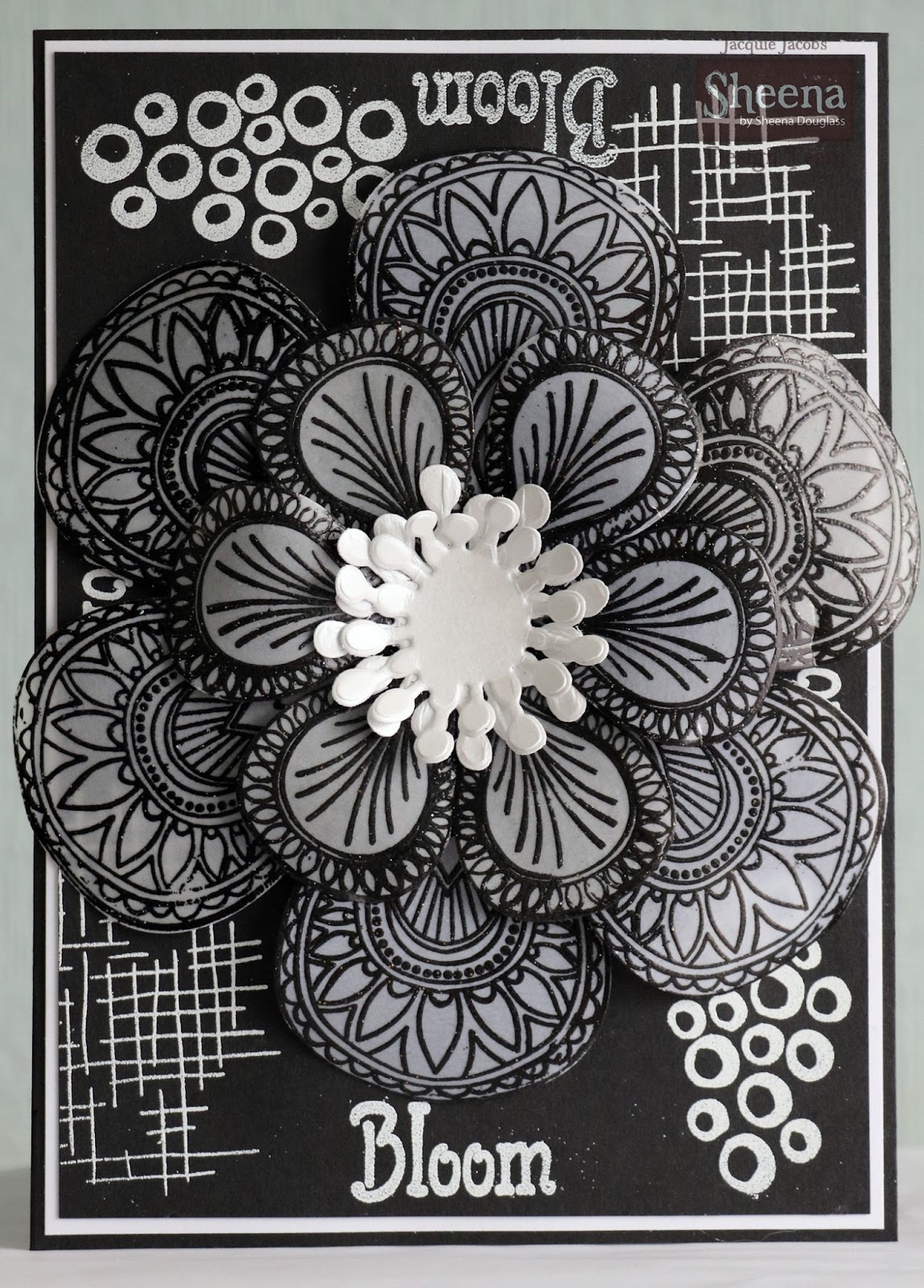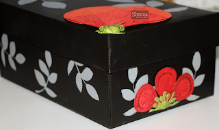Place a Black sparkly gem in the center of your poppies, arrange and adhere them with gel glue to the side of the card so they cover the edge of the Burgundy die and banner.