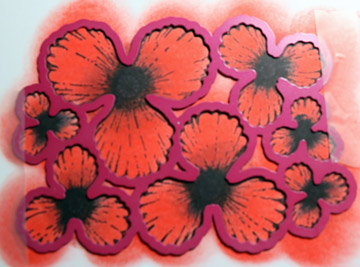 Stamp the Heartfelt Creations Blazing Poppy Stamp onto white card stock and colour with Harmony Water Reactive inks Chinese Red & Bordeaux. Then place the die Heartfelt Creations Blazing Poppy in position over the top and die cut.